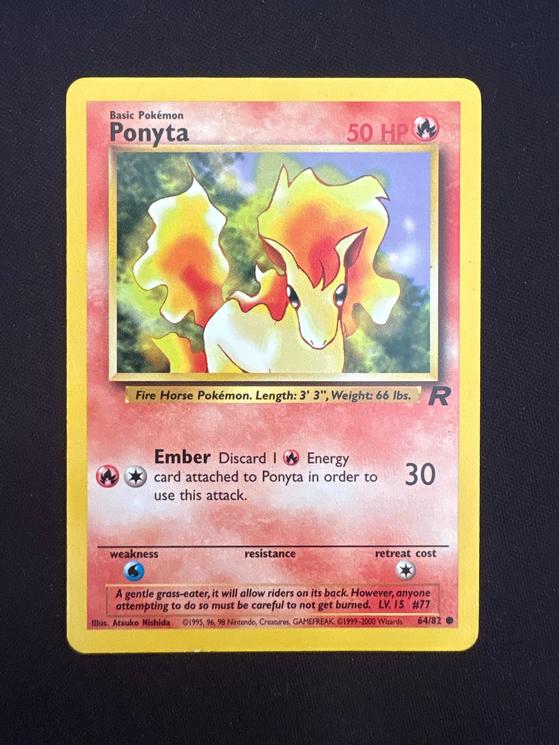 Dive into the Kanto region with this iconic Ponyta from the Rocket set! This legendary Pokémon card features stunning artwork, making it a prized addition to any collection.
